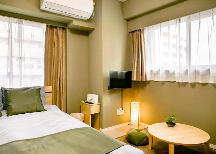 ベッドルーム1室のTriphome Nakano 2025 Green 東京都アパートは東京都庁から歩いて25分に位置し、宿泊から0.8km離れた中野鉄道駅へ行きやすいです。